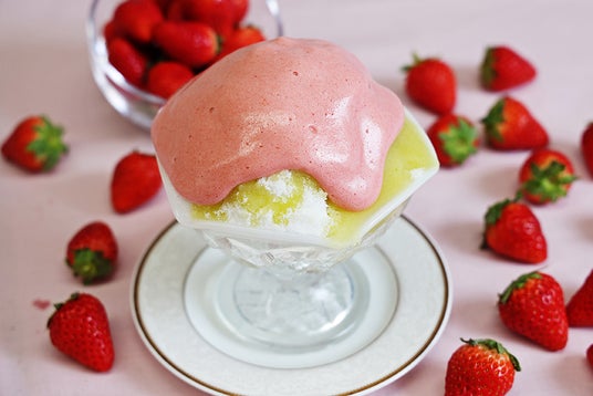「ピスタチオのかき氷 いちごのエスプーマ仕立て」