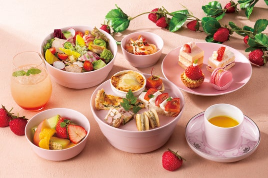 株式会社京王プラザホテル(本社:東京都新宿区、代表取締役社長:若林克昌)は、「五感で楽しむガーデンピクニック」をテーマにした、いちごのスイーツフェア「ストロベリースイーツブッフェ」を2025年1月15日(水)から2025年5月6日(火・祝)まで開催します。「みどりの新宿30選」に選ばれた木立がガラス越しに広がるレストラン「オールデイダイニング<樹林>」で、食べ頃のタイムリミットが120秒のふわふわ焼きたていちごスフレや、トロ~リ食感のいちごフォンダンショコラなど、さまざまなスタイルにアレンジしたいちごスイーツを中心に14種類をご用意します。ご自身で好きなパフェを創作できるコーナーを初めて設置するほか、ラクレットチーズ、肉料理、魚料理、サラダなどのセイボリーメニュー約10種類もそろえます。目の前で料理するライブキッチンでは音や香りまでお届けし、五感でお楽しみいただけるのが特長です。高層ビルが立ち並ぶ新宿でピクニック、という「非日常」を全 27種類(スイーツ+セイボリー+スペシャルドリンク)のメニューとともにご提供し、リラックスやリフレッシュできるひとときをお楽しみいただけます。