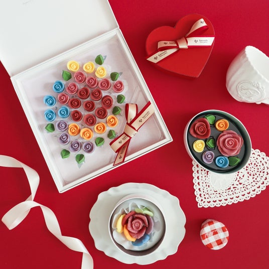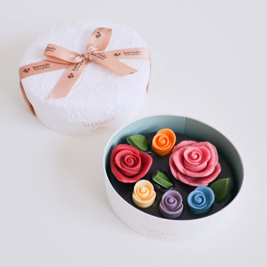 大切な方のイメージに合わせて、お好きなフレーバ―を自由に組み合わせて、心のこもったオリジナルギフトをお作りいただけます。また、『MESSAGE de ROSE BY KARENDO』のシンボルフラワーでもあるバラを立体的にデザインした名古屋タカシマヤ限定のマジカルラッピングとBOXが、特別なバレンタインをさらに引き立てます。バラの花言葉は「愛」、愛が溢れるバレンタインにふさわしい上質なチョコレートギフトです。贈り物としてはもちろん、頑張る自分へのご褒美としてもおすすめです。思わず食べるのをためらうほど美しく贅沢なチョコレートは、生花のようにしばらくお部屋に飾ってみても、、ぜひこの機会にお楽しみください。
