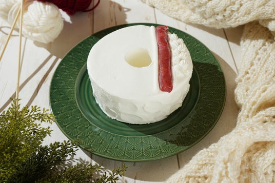 デコレーションのクリームはニットをイメージした絞りをあしらい、真っ赤なストロベリーダイスのフィリングが味でも見た目でもアクセントになっています。
