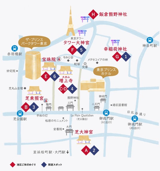 4. 大本山 増上寺 5. タワー大神宮 6. 宝珠院
