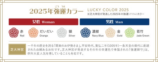 新しい年の開運を願い、縁起の良い食材や、関東のお伊勢さまと称される芝大神宮が発表する2025年の幸運色“強運(ごううん)カラー”を取り入れたメニューやドリンクをご用意いたしました。また、2025年の幸運を祈願し、芝大神宮でご祈祷いただいた食材を、さまざまなメニューに取り入れました。
