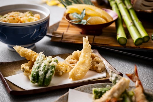 長寿の象徴の海老や鯛、立身出世の筍などの食材に加え、天ぷらでは珍しい子孫繁栄の数の子などを、ごま油と綿実油を調合した油で素材を生かしたさっぱりとした味わいで仕上げました。