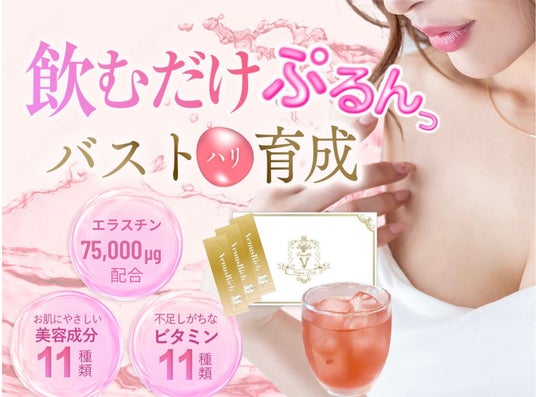 ■こだわり抜いた美容成分を贅沢配合■「ぷるっとヴィーナスリッチ」には、バストや肌に弾力を与える効果が期待されるグラマリズムエラスチン(R)やプロテオグリカンなど、注目の美容成分がたっぷり配合されています。これらの成分が内側から肌やバストケアをサポートします。
