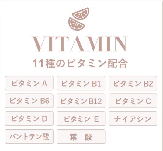 健康維持に欠かせない11種類のビタミンを配合。日々の不足しがちな栄養素を補いながら、美容と健康をしっかりサポートします。