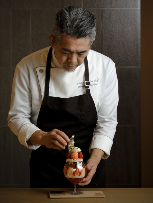 関西のラグジュアリーホテルにて、約40年近い経験に培われた技術と溢れる感性で、独創的なスイーツを数々開発。菓子職人として、ディスプレイづくりもこなし、デコレーションや細工菓子のコンテストにて大阪府知事賞や最優秀賞などの受賞歴を持つ。開業直後から好評の季節の移ろいを反映した、和菓子に愛らしい洋菓子のアフタヌーンティーは、目にも楽しく、口福なひとときを届ける。