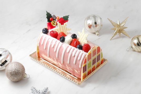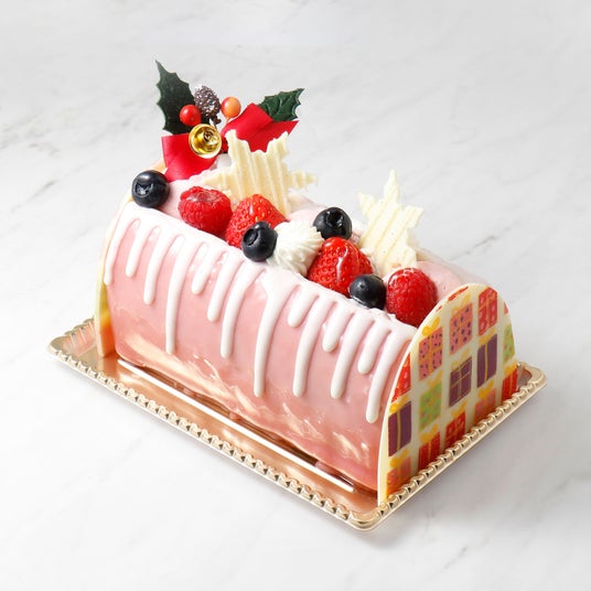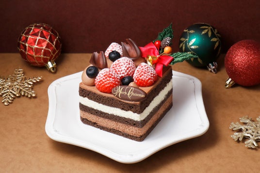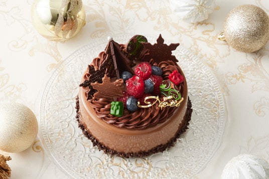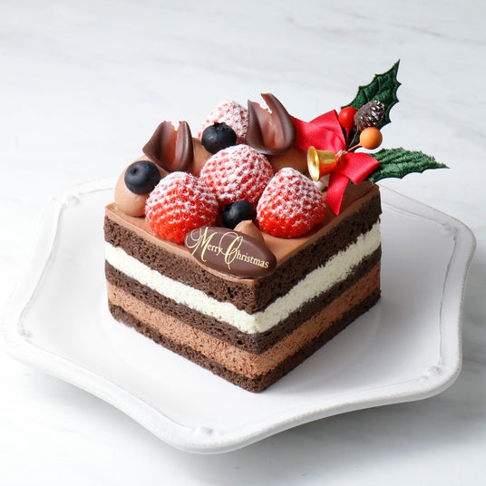 フレッシュな苺とブルーベリー、繊細なチョコレートの装飾により、クリスマスシーズンにふさわしい華やかな仕上がりを実現しています。