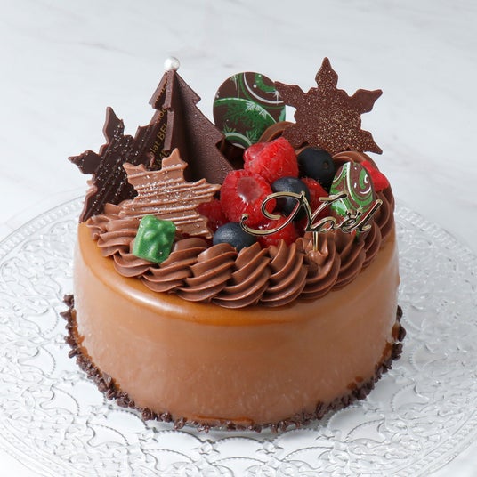 チョコレートブランドらしい華やかで繊細なチョコレート飾りで仕上げたクリスマスだけの特別なケーキです。