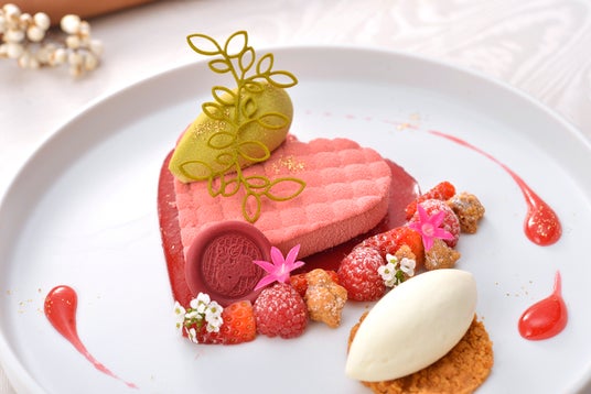 また、フォアグラのコクとベリーの酸味が調和したフレンチトーストや、苺のコーンで楽しむ口当たりなめらかなポークリエットなど、セイボリーにも苺を使用いたしました。さらに、ベリーの風味とチーズの相性の良さ、トマトの酸味がアクセントになったトマトコンソメとリコッタチーズや味わい深い“オニオンとポワローのポタージュ”、苺スイーツとのバランスにこだわった品々もラインナップ。一足早い春の訪れを感じるアフタヌーンティーをご賞味ください。