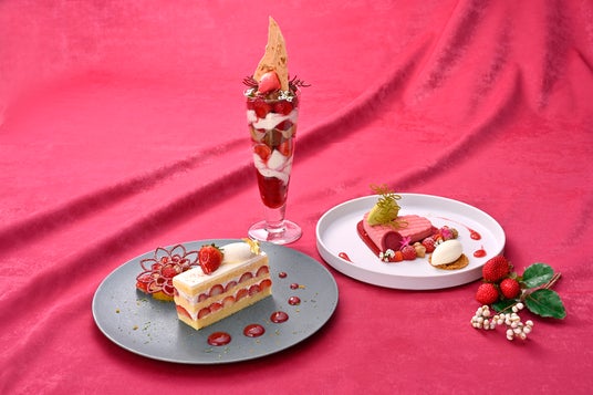 ■苺の可愛らしさを引き出した、美しいデザインのデザート3品もご用意。