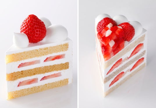 (左)開業40周年記念「スーパーショートケーキ」(右)開業50周年記念「エクストラスーパーあまおうショートケーキ」