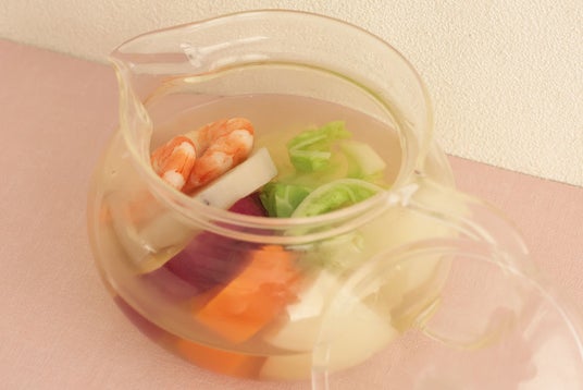 海老と冬野菜の土瓶蒸し風