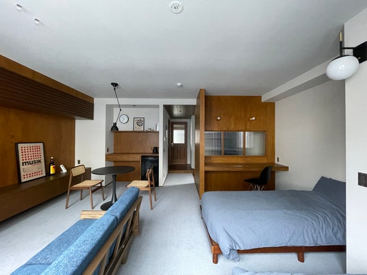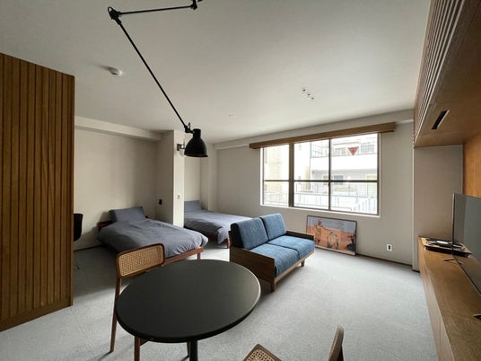 「NO SERVICE HOTEL」は古いビルをリノベーションして20~50平方メートル とスーツケースを広げられる広さを担保しながらも、価格帯をできるだけ抑えて、「このままここで暮らしたくなる空間」のような心地よくリラックスできるような空間を提供しています。現在、台東区寿と墨田区吾妻橋の2エリアにてホテルが稼働しています。