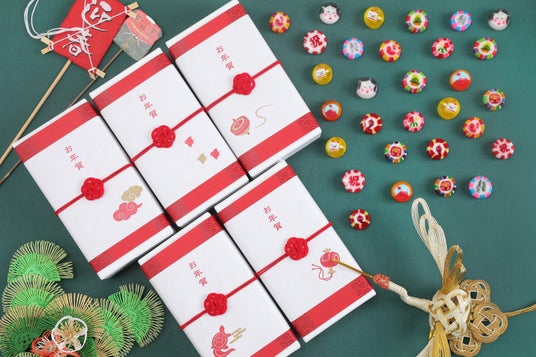 ●お年賀箱 5柄セットお年賀箱には、干支飴(み)の他に、赤富士や福笑いなど縁起の良い飴がランダムで計20個入っています。