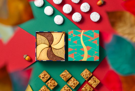 北海道産の小麦粉とバターにこだわった4種のクッキーに、フロランタン、ブールドネージュを詰め合わせたクッキー缶です。4段構造になっており、食べ進めていくワクワク感を演出します。缶のデザインは、ぐるぐると螺旋を感じるグラフィックを全面に施すことで、ブランドのテーマである“没入感”を表現。蓋を開けた瞬間に引きこまれる没入の世界観を、缶のデザインと敷き詰められたクッキーを通してお楽しみください。