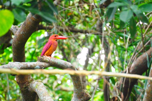 静寂なマングローブ林の川に響き渡るのは、春に西表島へ渡ってくる鳥、リュウキュウアカショウビンの美しい鳴き声です。日の出とともに聞こえ始める鳴き声の方を探してみると、緑のマングローブ林の中に真っ赤な体と大きなくちばしのを見つけられるかもしれません。西表島にとって、この鳥は、目覚めの朝と春の訪れを知らせてくれる存在です。