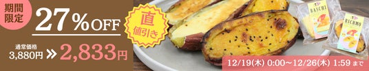 創業からわずか2年で、ネット通販1日1万件以上の注文を記録し、楽天市場で総合ランキング1位を獲得した芋國屋(本社 千葉県流山市)は楽天大感謝祭(12/19 20:00~12/26 1:59)期間中、人気商品を大特価で販売致します!