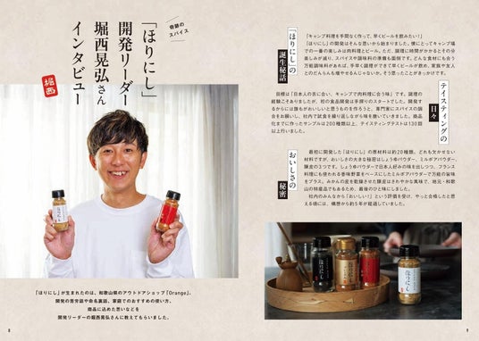 調味料の「アウトドアスパイス ほりにし」は、和歌山県の「アウトドアショップ Orange」から生まれたスパイス。ショップのマネージャー堀西氏の「キャンプ料理を手間なく作って早くビールが飲みたい!」「調理の時間を減らせれば、その分団らんを増やる!」との思いから、「どんな食材にも合う万能調味料があれば、手早く料理ができるはず」と思いついたことが開発のスタートに。