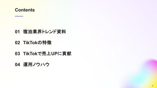 宿泊業界がTikTokを効果的に運用するためのノウハウをまとめ、具体的な運用ポイントや効果を最大化するための戦略を提案しています。