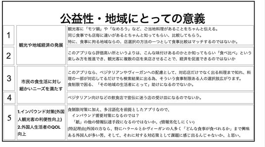 日本メニュー表の公益性、地域にとっての意義。食べ比べにより地域経済の促進(2)や、インバウンド需要対策(5)にも。