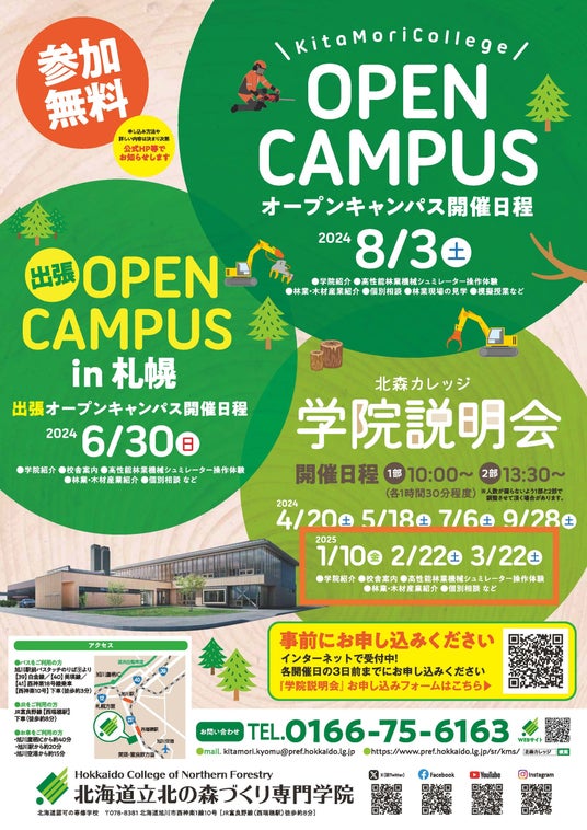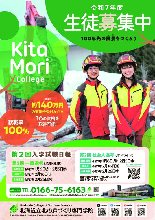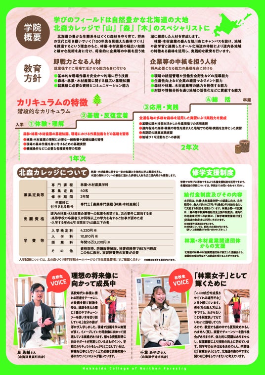 北海道立北の森づくり専門学院(略称:北森カレッジ)では、令和7年度生徒募集中です。