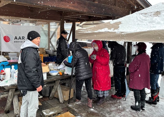 チョコレート25箱分で:国内災害の被災地で、10人に温かい出来立ての食事を提供することができます