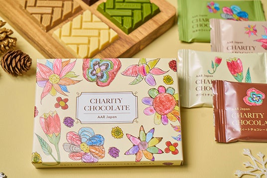 毎年大人気のAARチャリティチョコレート。定価800円(税込)のうち純益(1箱あたり約200円)は、すべて難民支援をはじめAARが行う世界17カ国での活動に役立てられます。