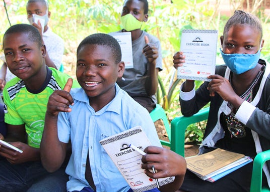 チョコレート5箱分で:ウガンダの難民居住地で暮らす子ども2人に、新学期に必要な文房具を届けることができます。