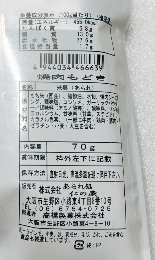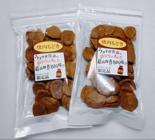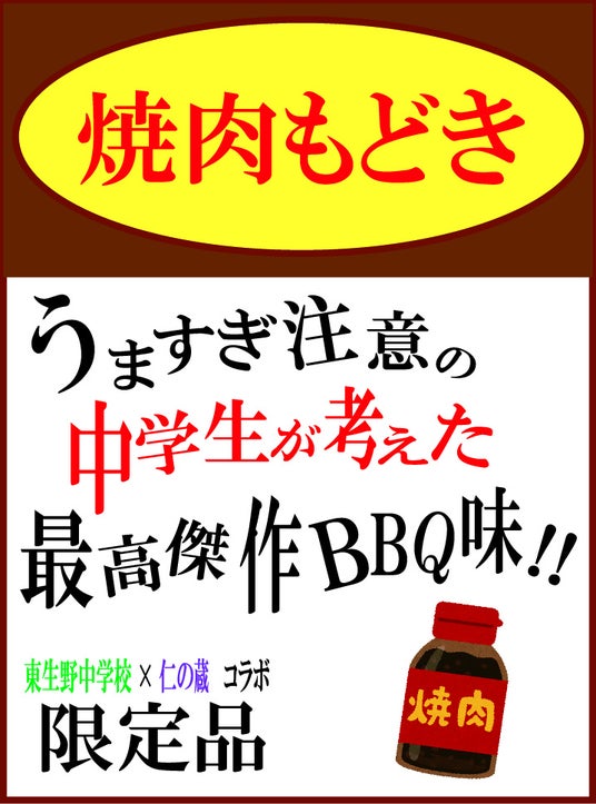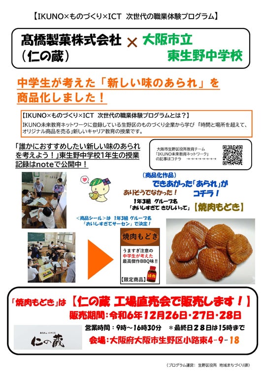 「焼肉もどき」は東生野中学校1年生が考え出したあられ、この日・ここでしか買えない限定商品です。