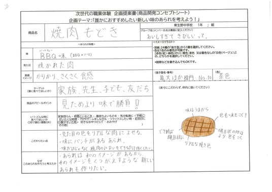 18案の中から選んだのは、グループ名【おいしすぎてきびしいって。】考案の「焼肉もどき」です。