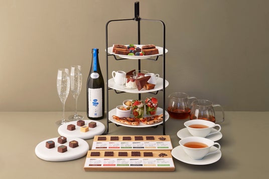 カカオ・チョコレートの魅力がギュッと詰まった期間限定のアフタヌーンティー。全スイーツ&セイボリーにカカオを使用し、新作のボンボンショコラをはじめ、ドリンクまで存分に楽しめる特別な日にぴったりのメニューです(写真は2人分)。