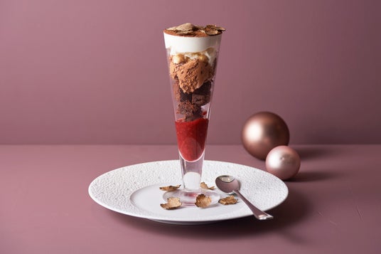 芳醇な香りのトリュフと濃厚なビターチョコレートムースの斬新な組み合わせに驚く、新感覚パフェ。ガトーショコラとベリーソース、ヘーゼルナッツも美味を重ねます。贅沢な気持ちで満たされるバレンタイン限定デザートです。