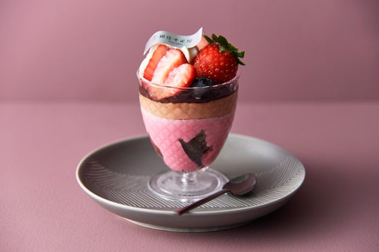 厳選した国産いちごや、チョコレートムース、フランボワーズムースが層を重ねたお持ち帰りで楽しんでいただけるミニパフェです。六本木ヒルズ店限定で、トップのフルーツを増量してご提供します。
