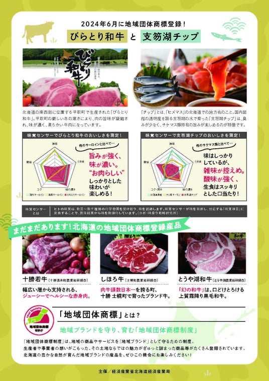 北海道では農水産品を中心に43件(12月17日現在)が地域団体商標に登録されており、今年度はびらとり和牛、支笏湖チップをはじめ5件が新たに登録されました。