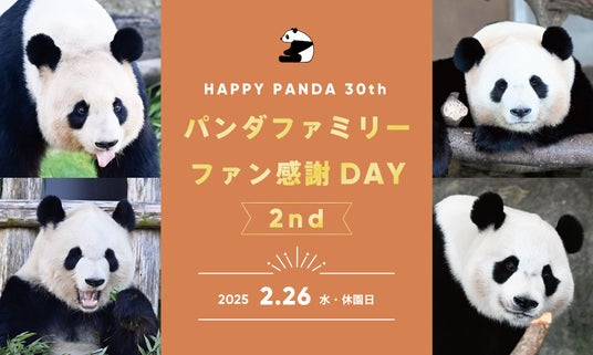 アドベンチャーワールド(和歌山県白浜町)は、ジャイアントパンダとともに歩んできた30年の感謝をお届けする「パンダファミリーファン感謝DAY」を、2025年2月26日(水・休園日)に再び開催いたします。前回10月に開催しご好評いただいた第1回よりも、さらにゆったりとしたプログラムで、お一人おひとりに特別なひとときをご提供し、愛らしいパンダたちとの心温まる時間を通じて、感謝の想いをお伝えします。この機会にぜひ、特別な一日をお過ごしください。