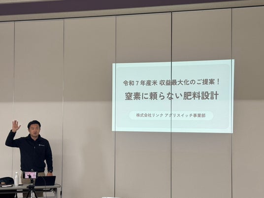 本セミナーでは、肥料コストの増加や高温障害、初期生育不良、倒伏など、水稲生産者が直面する主要な課題について、原因分析と効果的な対策を解説しました。講師には、株式会社リンク アグリスイッチ事業部の人見翔太が登壇。これまで1,000回以上の肥料設計を手がけてきた豊富な経験をもとに、収量や等級の向上を目指した具体的な方法をわかりやすく伝授しました。