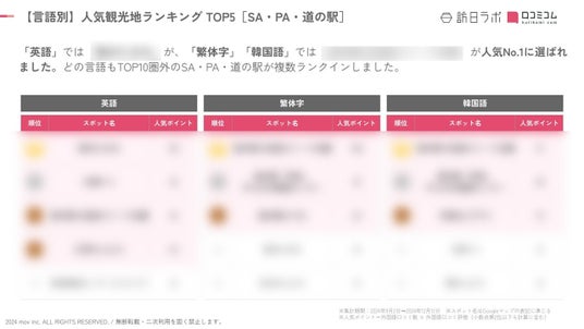 業界最大級のインバウンドビジネスメディア「訪日ラボ」及び 店舗向け集客一元化プラットフォーム「口コミコム」を運営する株式会社mov(代表取締役:渡邊 誠、本社:東京都渋谷区、以下mov)は、SA・PA・道の駅に寄せられた最新の口コミデータから、独自の『インバウンド人気観光地ランキング』を発表しました。