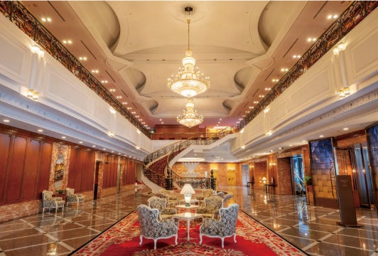 館内は光・水・緑をテーマとした自然美あふれるリゾート空間が広がり、ヨーロピアン調の豪華で重厚感のある装飾が特徴です。