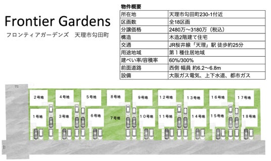 ◆フロンティア都市開発社 セキュリティタウン「フロンティアガーデンズ 天理市勾田町」概要