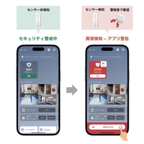 ・ 音:セキュリティモード作動中のドアや窓の開閉時にサイレンを発報。