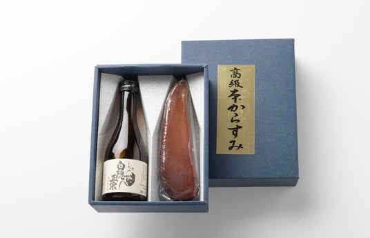 川善の「本からすみ」に、マイルドな米の旨味とキレのある飲み口が特徴の地酒「白隠正宗」を組み合わせた贅沢なギフトセット。「川善のからすみ」との相性抜群のお酒を厳選しました。贈り物にはもちろん、自宅での晩酌にもおすすめです。
