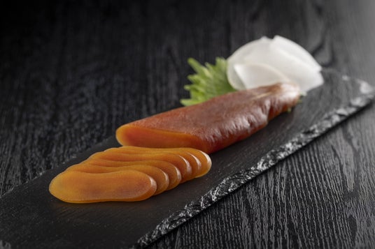 からすみとは、ボラの卵巣を塩漬けにして、圧搾・乾燥した食品です。