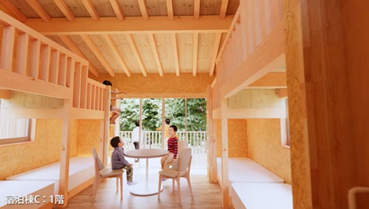 市内小中学校に加え、新しい自然の家のモデルとして、一般利用者向けプラン等の提供も行います。多様な宿泊室や天体観察テラス、遊具などを一体整備し、こどもから大人まで多くの利用者が自然の中で楽しめる施設です。