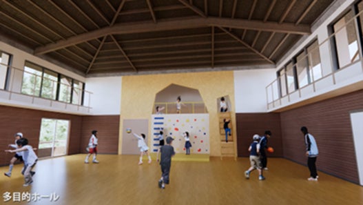 多目的ホール:264平方メートル クライミングウォール、ネット遊具有