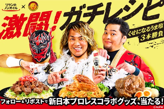 キャンペーン特設サイトでは、『リケンのノンオイル くせになるうま塩』を使い、「新日本プロレス」に所属する棚橋弘至選手、矢野通選手、エル・デスペラード選手をそれぞれイメージしたワイルドなオリジナルレシピを公開します。