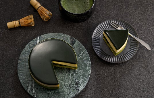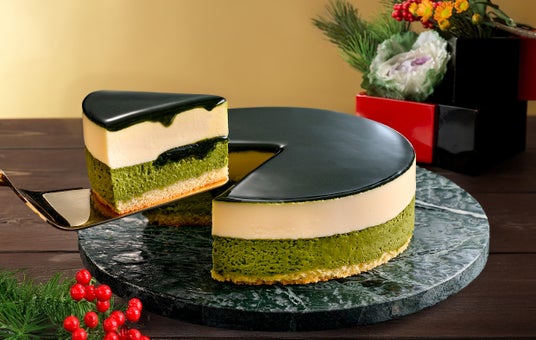 味わいのバランスが進化抹茶ベイクドチーズケーキ、抹茶ジュレ、レアチーズムースの3層が調和し、それぞれの特徴を引き立てながらも一体感のある絶妙な味わいに。