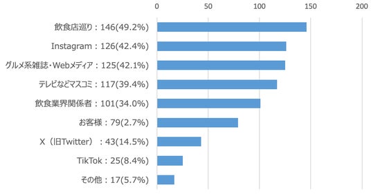メニュー考案のヒントとなる情報源、最も多いのは「飲食店巡り」と「Instagram」