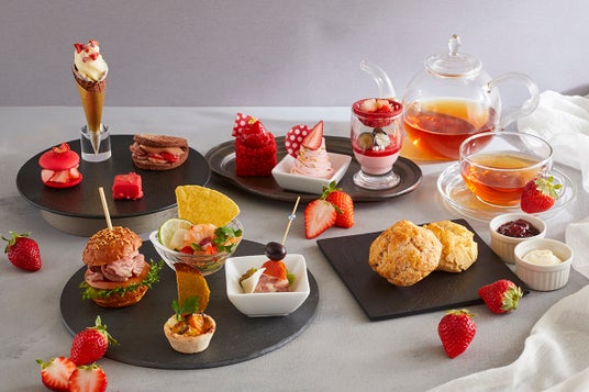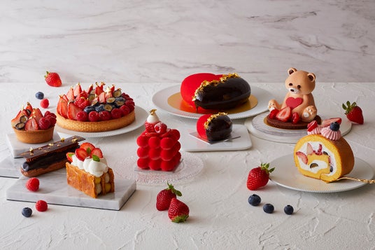 スイーツでは、クリーミーなマスカルポーネにいちごの甘酸っぱさが絶妙にマッチした「マスカルポーネとストロベリーのモンブラン」や、ストロベリーチョコレートのパンナコッタにいちごのゼリーが層をなす上品な「ストロベリーチョコレートヴェリーヌ」、ライムの酸味がいちごの甘さを引き立てる「ライムとストロベリーのマカロン」にレモンの爽やかな風味がアクセントの「レモンとストロベリーのベイクドチーズケーキ」など、いちごカラーの赤が映える華やかな7種が登場いたします。