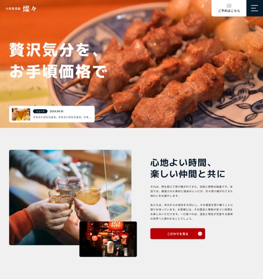 株式会社SANの「戦略的デザイン」を活かした、飲食店専用のWEBサイトテンプレートが誕生しました。飲食店に必要な機能を標準装備しながら、通常数百万円かかるWEBサイトをリーズナブルな価格でご利用いただけます。デザイン性と実用性を兼ね備えたテンプレートで、店舗の魅力を最大限に引き出します。