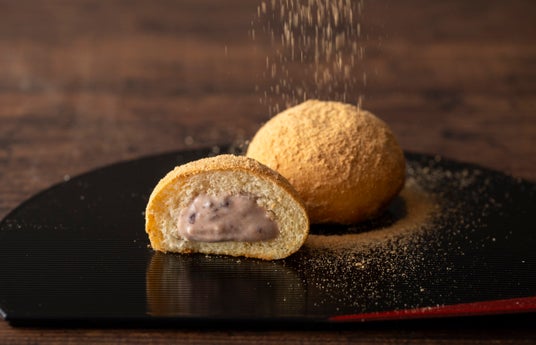 一般的なドーナツとは異なり、八天堂独自の開発技術を生かし、ドーナツ生地をオリーブオイルで揚げ焼きにしています。中には北海道産小豆を使用した小倉クリームを入れ、風味豊かなきな粉をたっぷりとまぶしました。(冷蔵商品です)